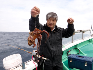 4/15 銭洲 岡本氏 銭洲でタコ!??? これまた、銭洲で初めて釣れました! びっくりです!