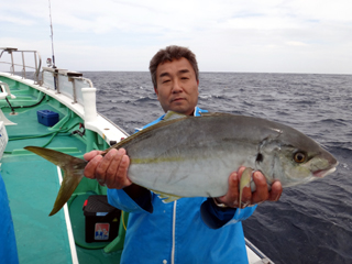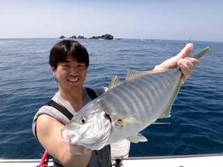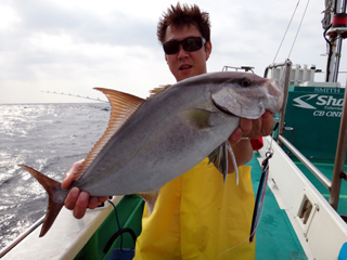 4/14 銭洲 目黒区 草間大樹氏 シマアジ2.4kg 忠文船長→やりましたね!画像送りましたので確認してください!