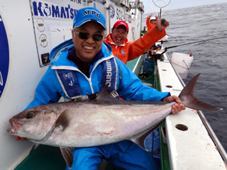 4/15 銭洲 犬山市 余呉幸治氏 初!カンパチ14.55kgGET ムロアジの泳がせで釣りました! おめでとう!