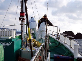4/08 銭洲 永山氏、柴田氏の個人解禁式 お神酒を撒いて釣行安全を祈る!
