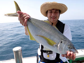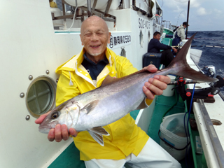 4/08 銭洲 永山氏 カンパチ2.8kg 忠文船長より 永山さん!カン冴えてましたね!