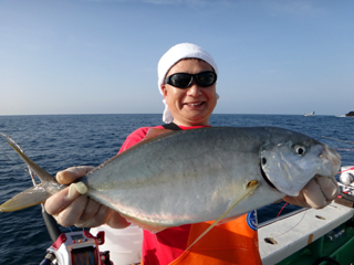 4/09 銭洲 飯田助手 シマアジ1.2kg シマアジ攻略に、(^o^)ニコリ
