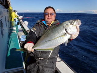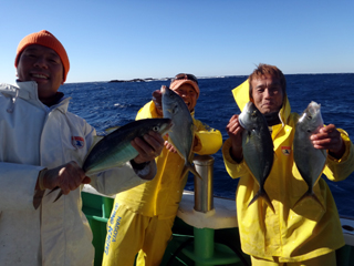 12/27 銭洲 17.0℃薄濁り 長谷川氏、伊藤店長、古山さん シマアジ祭りで締めました!