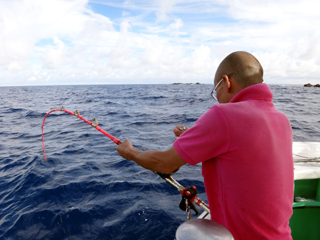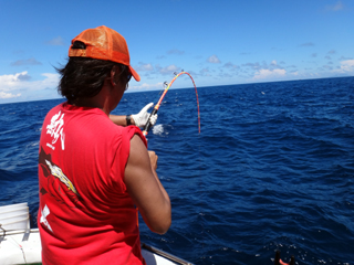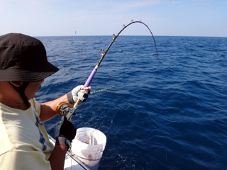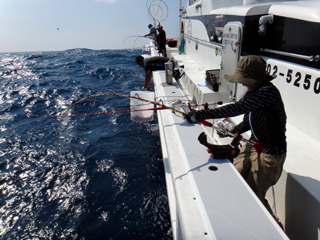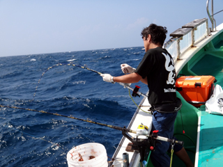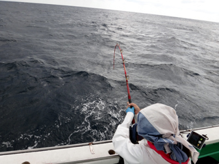 9/28 銭洲 25.4℃濁り 木村さんのカンパチファイト! 今日は頑張りました(^O^)/