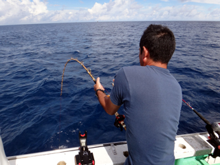 9/04 銭洲 28.8℃薄濁り チビムロ作戦 ヒラマサの引きに耐えてる鈴木さん! 頑張りました !