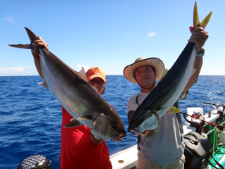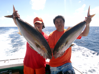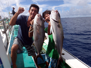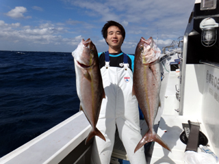 9/03 銭洲 29.0℃薄濁り チビムロ作戦 田口さん&佐藤さん 貫録のカンパチVです。