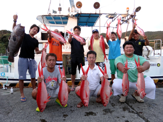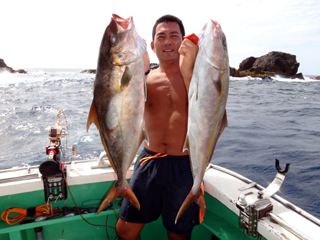 9/01 銭洲 26.8℃薄濁り チビムロ作戦 世田谷区 木村 宏さん カンパチ5.8-6.85kg2本、ヒラマサ3.75kg 絶好調の竿頭です! おめでとう御座います。