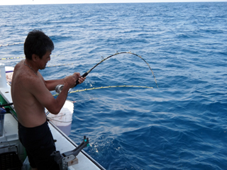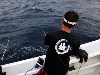 9/03 銭洲 29.0℃薄濁り チビムロ作戦 田口さんのカンパチファイト! 後姿もきまってます!
