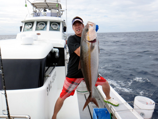 9/01 銭洲 26.8℃薄濁り チビムロ作戦 腕は鈍ってませんでした! カンパチ5.5kg どうだ!大輔!!! By 柴田~マン