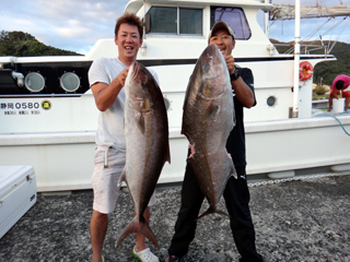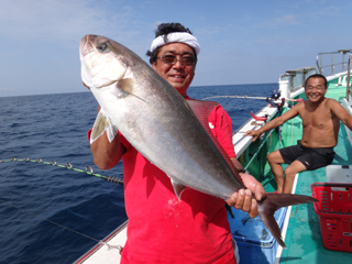 9/22 銭洲 25.7℃薄濁り 余裕ですね~♪平澤さん♪ カンパチ5.8kg