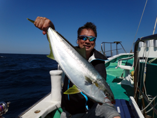 9/28 銭洲 25.4℃濁り 初!銭洲!初!とび島丸☆ 八王子市 堤さん ヒラマサ1.85kg 頑張りました!