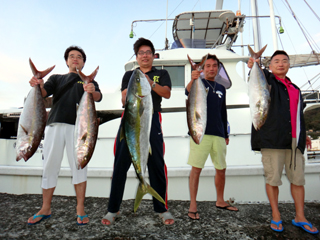 9/03 銭洲 29.0℃薄濁り チビムロ作戦 カンパチ1.2-6.6kg5本、ヒラマサ2.2-3.65kg5本 ツムブリ3.7-6.15kg5本