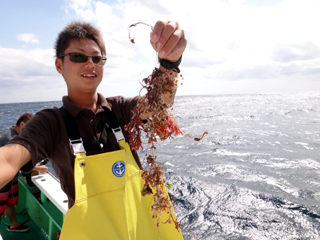 9/29 銭洲 25.0℃薄濁り 捨て糸に海藻類が… 考え方によってですが、漁礁にもなりますね。