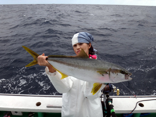 9/22 銭洲 25.7℃薄濁り 江戸川区 中村祥子さん ヒラマサ5.6㎏! 墨田区 秋山初愛さん ヒラマサ6.85㎏!