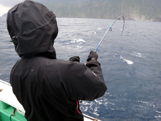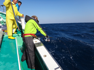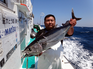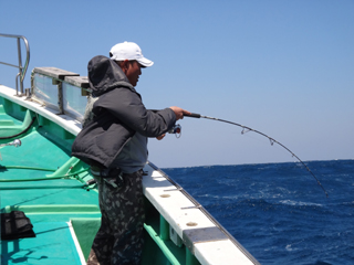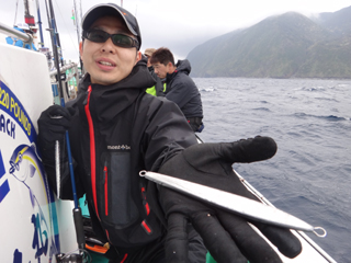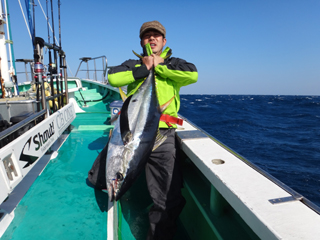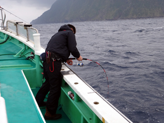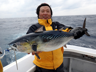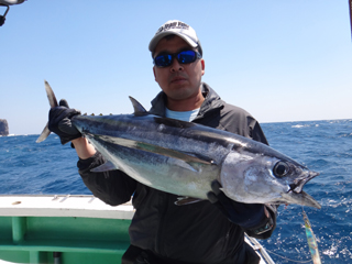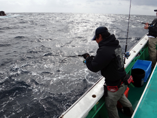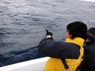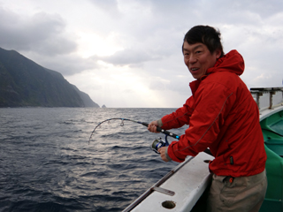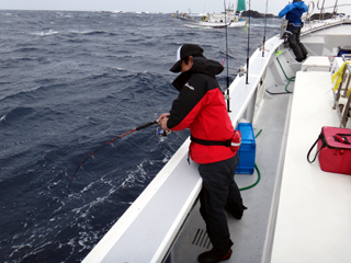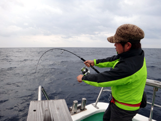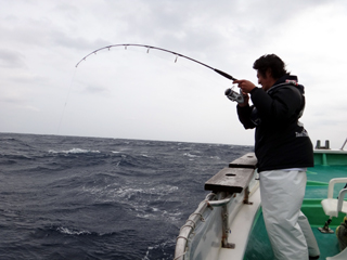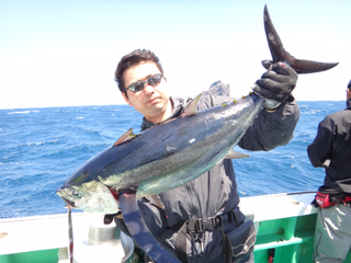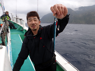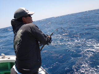 3/31御蔵島沖 21.8℃澄み 吉浦まぐろ隊長! 余裕のマグファイトです。