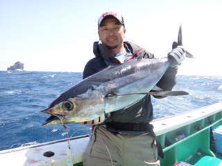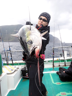 3/31御蔵島沖 21.8℃澄み 島村氏 キハダ10.35kg