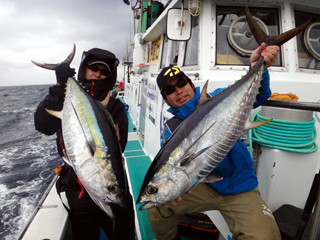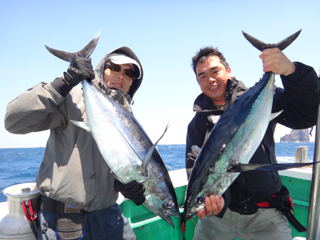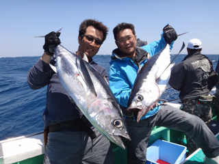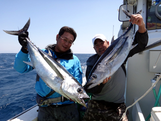 3/31御蔵島沖 21.8℃澄み 有馬氏&柳沢氏 キハダ12.1kg&11.2kg