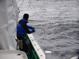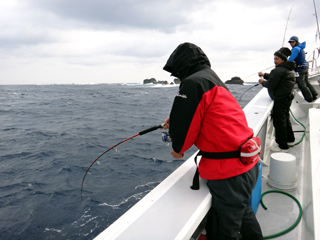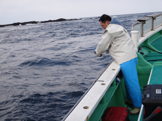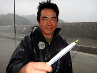 4/06 銭洲 17.7℃濁り ベインズ 秋山氏のパチファイト 秋山氏の雄叫びが聞こえてきそうです(^^)