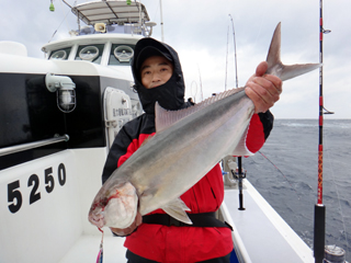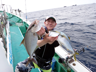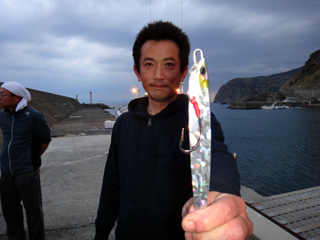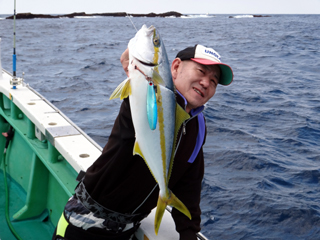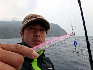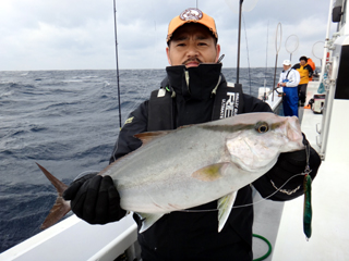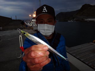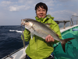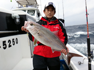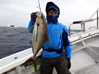 4/01 銭洲解禁 21.7℃澄み 沼津市 遠藤氏 カンパチ2本GET! ジュゲム&スロースキップ150gグリーン&シルバー