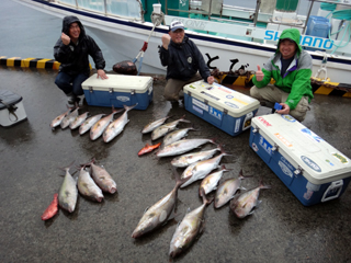 4/06 銭洲 17.7℃濁り ルアカン1.55-5.45kg5人23本 (写真20本。+飯田3本)