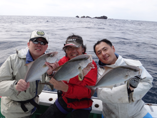 4/01 銭洲解禁 21.7℃澄み 渡辺氏 カンパチ4本GET! 小型はリリースしました。