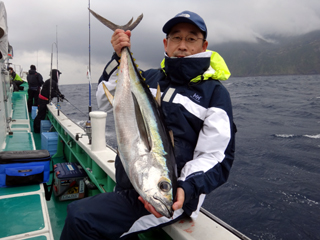 4/01 銭洲解禁 21.7℃澄み プロショップMOGI 吉村氏 カンパチ13.65㎏! 本日 銭洲ルアカン最大!おめでとう御座います。