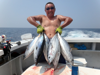8/08 駿河湾 メジカツ狙い開幕! カツオ2.55‐3.8㎏頭7計14本! キメジ5.5-6.4㎏2本! |