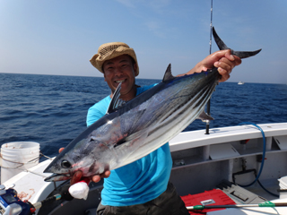 8/12 駿河湾 メジカツ狙い開幕! 宇野氏 カツオ4.65㎏頭で8本&キメジ1本!