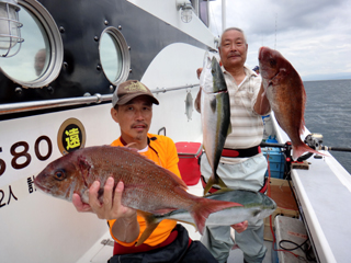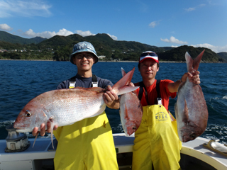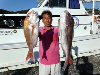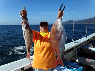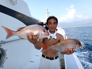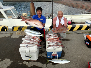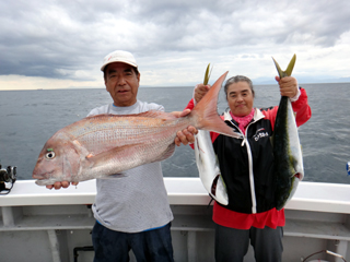 9/25 土肥沖 マダイ&ワラサ絶好調! 藤沢市 相田様夫妻 マダイ&ワラサ大漁!