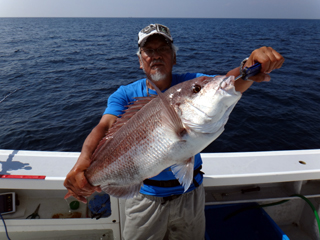 9/19 土肥沖 マダイ&ワラサ狙い! 草加市 深川氏 マダイ3.05㎏頭で2枚!