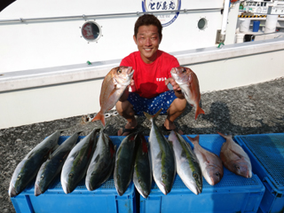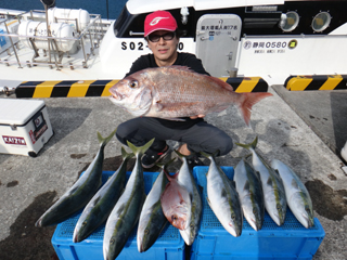 9/21 土肥沖 マダイ&ワラサ狙い! 調布市 奥村氏 マダイ1.85㎏&ワラサ7本!