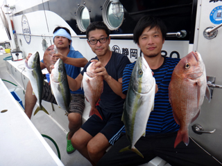 9/14 土肥沖 マダイ&ワラサ狙い! 土肥沖初挑戦!伊藤氏&渡辺氏&大山氏 皆さんマダイにワラサGETです!(^u^)