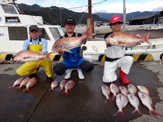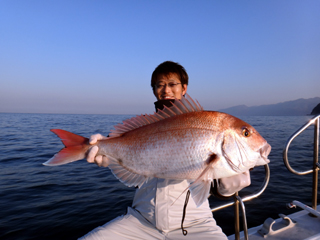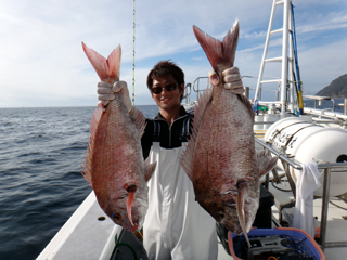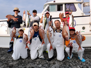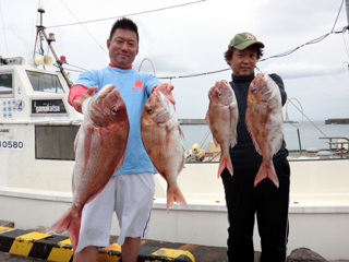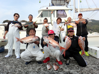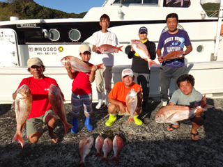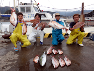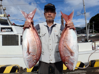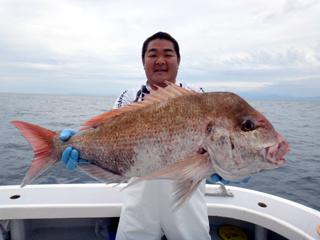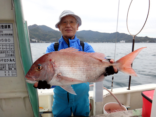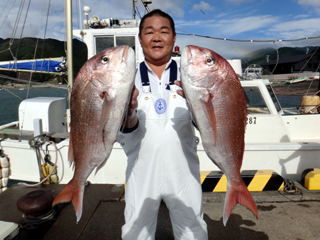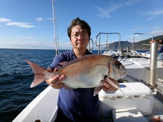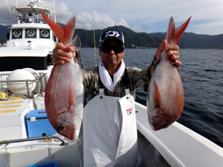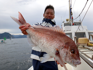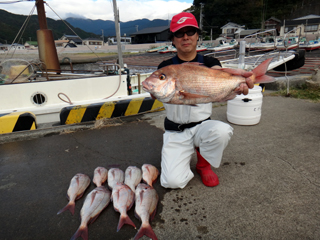10/02 土肥沖 マダイ絶好調! 川崎市 名古屋氏 マダイ3㎏級頭で6枚!