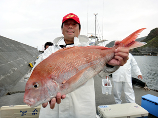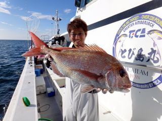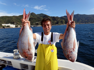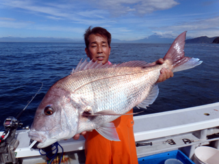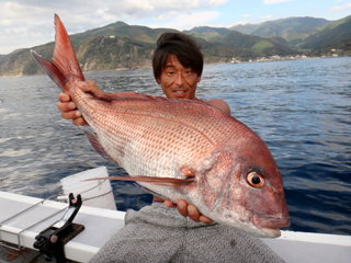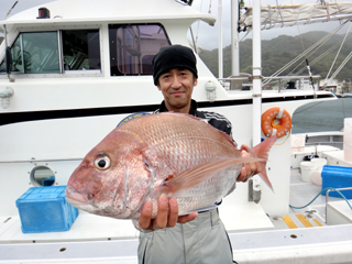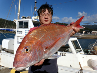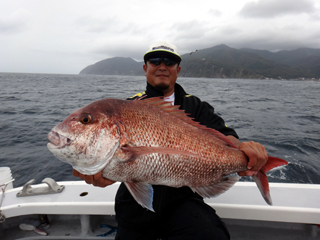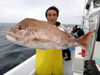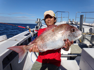 10/09 土肥沖 マダイ好調! 草加市 前田哲哉氏 マダイ3.4㎏頭で3枚!