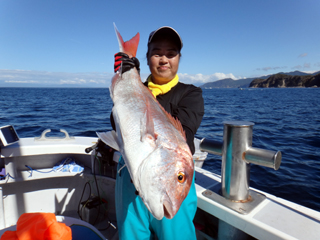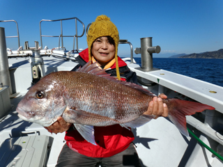 11/23 土肥沖 秋鯛狙い! 秦野市 平山恵子さん マダイ3.87㎏! マダイ初挑戦でお見事!!