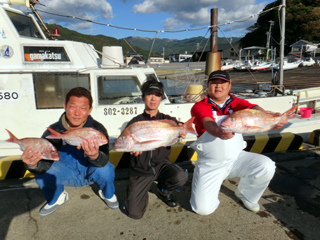 11/03 土肥沖 秋鯛狙い! 秦野市 川口氏 マダイ2.6㎏頭で5枚GET!