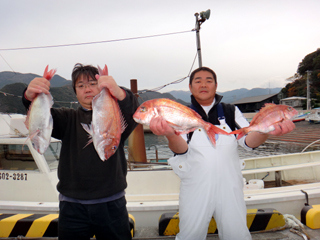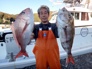 12/04 土肥沖 秋鯛狙い! 一寸木氏 マダイ1.85㎏頭で4枚! 榊原氏 マダイ1.65㎏頭で2枚!