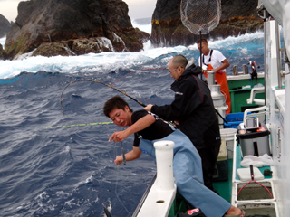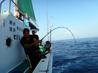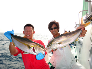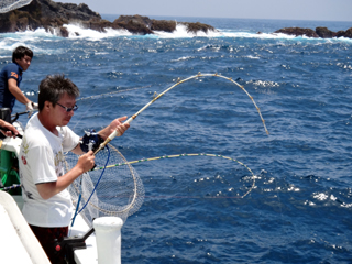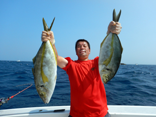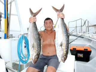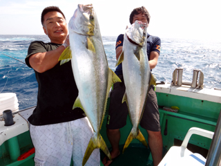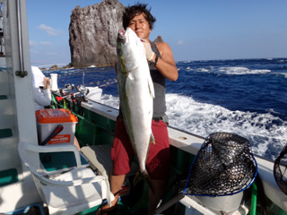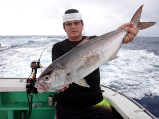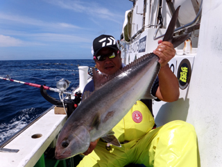 7/01 銭洲 23.2℃薄濁り ムロ作戦 ワールドスターFishingCLUB例会 N会長 カンパチ15.15kg ヒラマサ15.35kg 初のムロアジ泳がせにてブッチギリの釣果をたたき出してくれました! お見事です。 そして、ど根性の持ち主でもあり。 「逃げないで立ち向かう」「多くの夢を実現してゆく」有言実行の人でもありました。 必見→ KNJIA GROBAL ←勇気がわきます。 とび島丸創業以来、銭洲にて最初にしてモヒカン(モロコ、ヒラマサ、カンパチ)リーチの方はN様含ただ1人。 心より祝福します。おめでとう御座います。 今後ですが、是非ともモロコ15kg以上をGETし、モヒカン達成していただきたい。 モヒカン。。。何年も未達成になっています。 宮内、飯田。健司船長。そして私。気合入れてスタンバッてます! 必ず達成しましょう! 気合の入ったお電話お待ちしています!有難う御座いました。