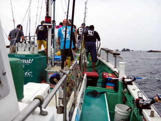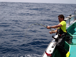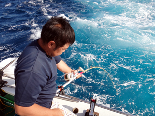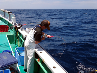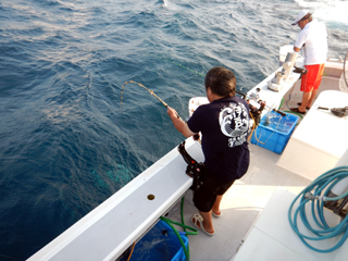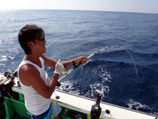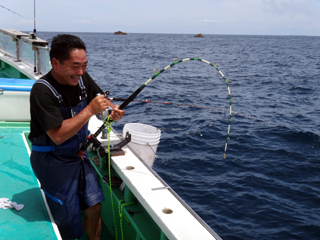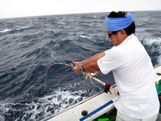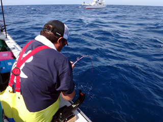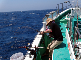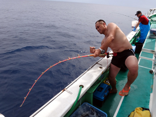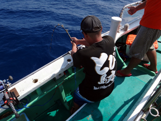 7/12-13 大人の遠足 part 2 銭洲→藺灘波→銭洲 2日目 銭洲24.1-22.7℃澄み加減 FishingKING 伊藤店長さん ある時は、皆さんのサポート役に。 そして、ある時は良き釣人。 今回も、サポートから釣人へと忙しく気を使って頂き、誠に感謝しています。 良き釣人を育てるには、海を知り、釣りを理解する。そして、自分に勝つ根性が必要です! 全てを持ち備えた釣師は数少なく、伊藤さんのような方は知っている限り2人目です。 良い釣人に恵まれた事に感謝いたします。 今後とも末永きお付き合い宜しくお願い致します。 この度の釣行会、お疲れ様でした。
