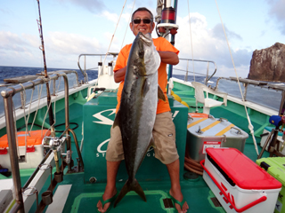7/28-29 大人の遠足 part 5 銭洲→藺灘波→銭洲 1日目銭洲25.7℃薄濁り K親分 カンパチ12.25kg 流石のファイトでした! おめでとう御座います。