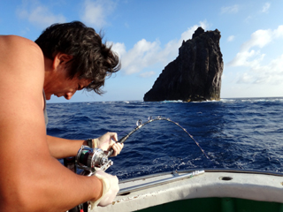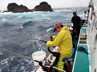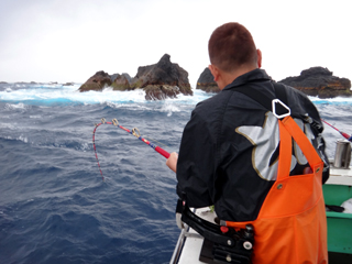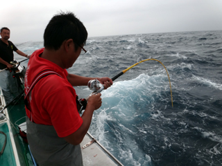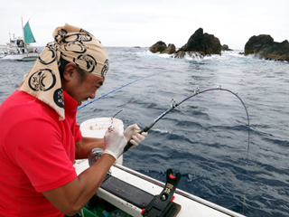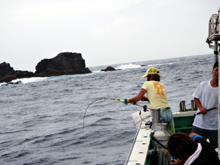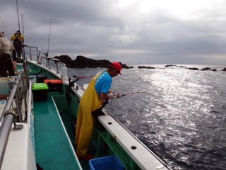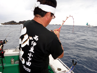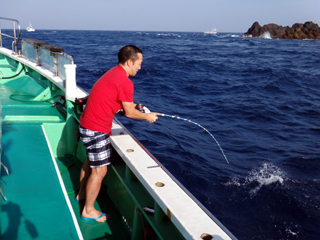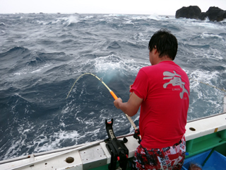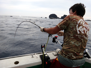 7/12-13 大人の遠足 part 2 銭洲→藺灘波→銭洲 1日目 藺灘波26.5薄濁り 絶好調のKさん ロッド:アリゲーター リール:DAIWAメガツイン750