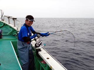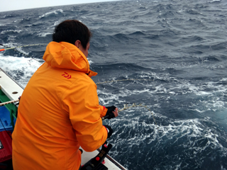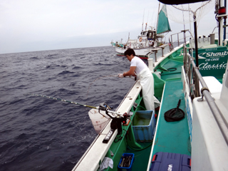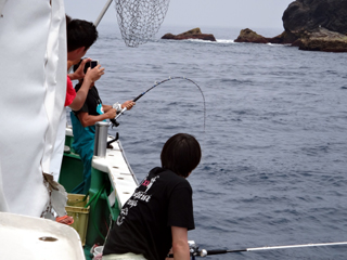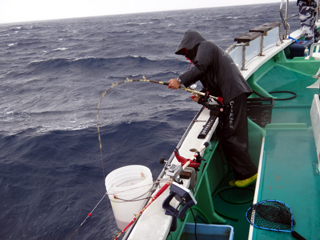 7/05 銭洲 22.5-24.1℃濁り アカイカ作戦 茨城県 Yさん。 銭洲へ揉まれに。。。と言いつつ楽しんでます! 余裕にも見えます。バリバリヒットさせてました。