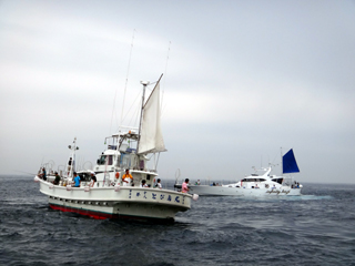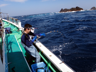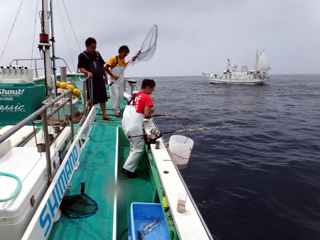 7/02 銭洲 23.8-21.1℃薄濁り アカイカ作戦 極の会 N会長 急激な水温低下も、なんのその。 かかって来なさい!ポーズ。きまってます。 今回は目標達成できませんでした。 探索は次につながる事。 じっと待つのも「て」。 他船のケツ追うのも「て」です。 私は、どちらにも属しません。 自分の目で確かめ、皆さんの腕を信用し探索しています。 結果は結果です。力及ばずでした。 この縁を大切にしたいと思います。 スタッフ一同精進してまいります。 次回も、とび島丸を宜しくお願い致します。 有難う御座いました。