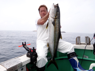 7/06 銭洲 23.4℃濁り 沼津市 W様 カンパチ5.35kg アカイカあっても、拘りのムロアジ使用。 獲物を狙う瞳は野性味あふれてます。 男らしさあってのWさん。今後も盛り上げて行きましょう! バリバリ気合入れますので宜しくお願いします。 有難う御座いました。