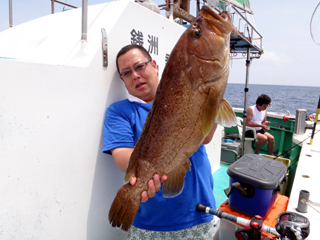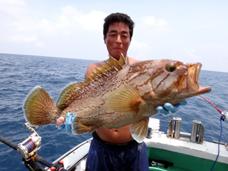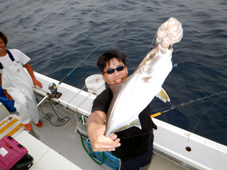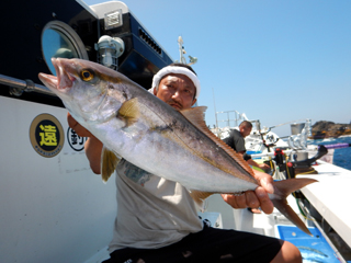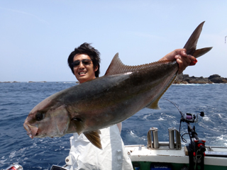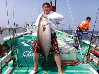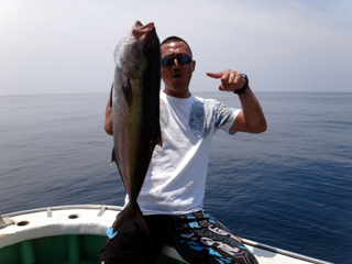 7/06 銭洲 23.4℃濁り アカイカ作戦 横須賀市 N様 カンパチ7.9kg ギラッと光るサングラス!ポーズもキマッてます! Nさん。良かったね!頑張った甲斐がありました。 初の泳がせチャレンジにしては、やり取りも安定してました。 次回は男のムロアジ勝負! フルサポートさせて頂きますので宜しくお願いします。 またのご予約お待ちしています。 有難う御座いました。
