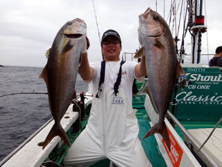 7/14 銭洲 23.3℃濁り チビムロ作戦 横浜市 S様 カンパチ6.15-8.45kg2本 鬼カサゴ以来のお越し、誠に有難う御座いました。 小物から大物までやられるとは、関心しました。 しかも、集中力抜群。 今後の展開に期待します。 必ず来てください。更なる上を目指しましょう! 今後とも宜しくお願い致します。