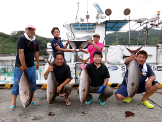 7/22 銭洲 26.5℃薄濁り チビムロ作戦 横浜市 W様 カンパチ1.8-4.6kg3g本 久々のご乗船有難う御座います。 なお、座席指定からVIPルーム利用、釣具の運搬、イグロ128の設置等々。至れり尽くせりのスーパーVIPシステムご利用くださり誠に有難う御座いました。 スーパーアシスト等、ご利用につきご要望が御座いましたらお気軽にご連絡ください。 次回、ご乗船お待ちしております。 今後とも末永きお付き合い宜しくお願い致します。
