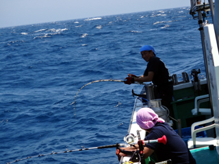 7/07 銭洲 23.3℃澄み ムロアジ作戦 RINDAさん ヒット中。。。 食わせも、合わせも上手くなりました。 上達しましたね!これからも益々、とび島丸を引っ張っていく存在でいてください! 期待しています!