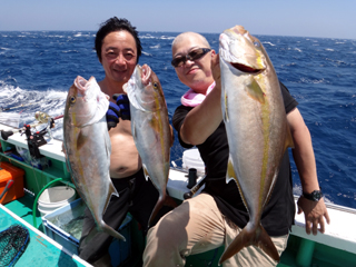 7/12-13 大人の遠足 part 2 銭洲→藺灘波→銭洲 2日目 銭洲24.1-22.7℃澄み加減 名古屋 ARISA,K様 カンパチ4.2-5.25kg3本 とび島丸に通い、数年がたちます。 カンパチ。カンパチ。カンパチ。 カンパチを狙い、やっと!GETできました。 おめでとう御座います。 父のサポート!素晴らしかったです。 この勢いで、カンパチ釣りBATTLE!嬢王の座も狙いましょう! 宜しくお願い致します。有難う御座いました。