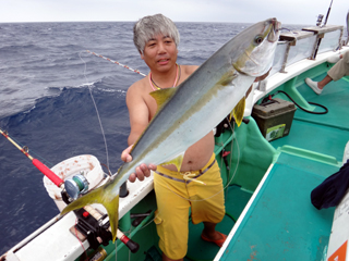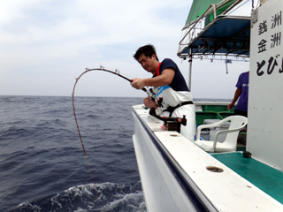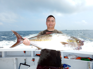 7/14 銭洲 23.3℃濁り チビムロ作戦 府中市 S様 カンパチ6.75kg 腕は鈍っていなかったです! 多忙の中、とび島丸ご利用下さり誠に有難う御座います。 以前にも増して、カンパチゲーム楽しんで頂けたらとスタッフ一同サポートさせて頂きます。 今後とも宜しくお願い致します。 有難う御座いました。